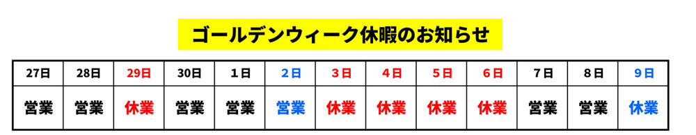ゴールデンウイークの休暇のお知らせ
